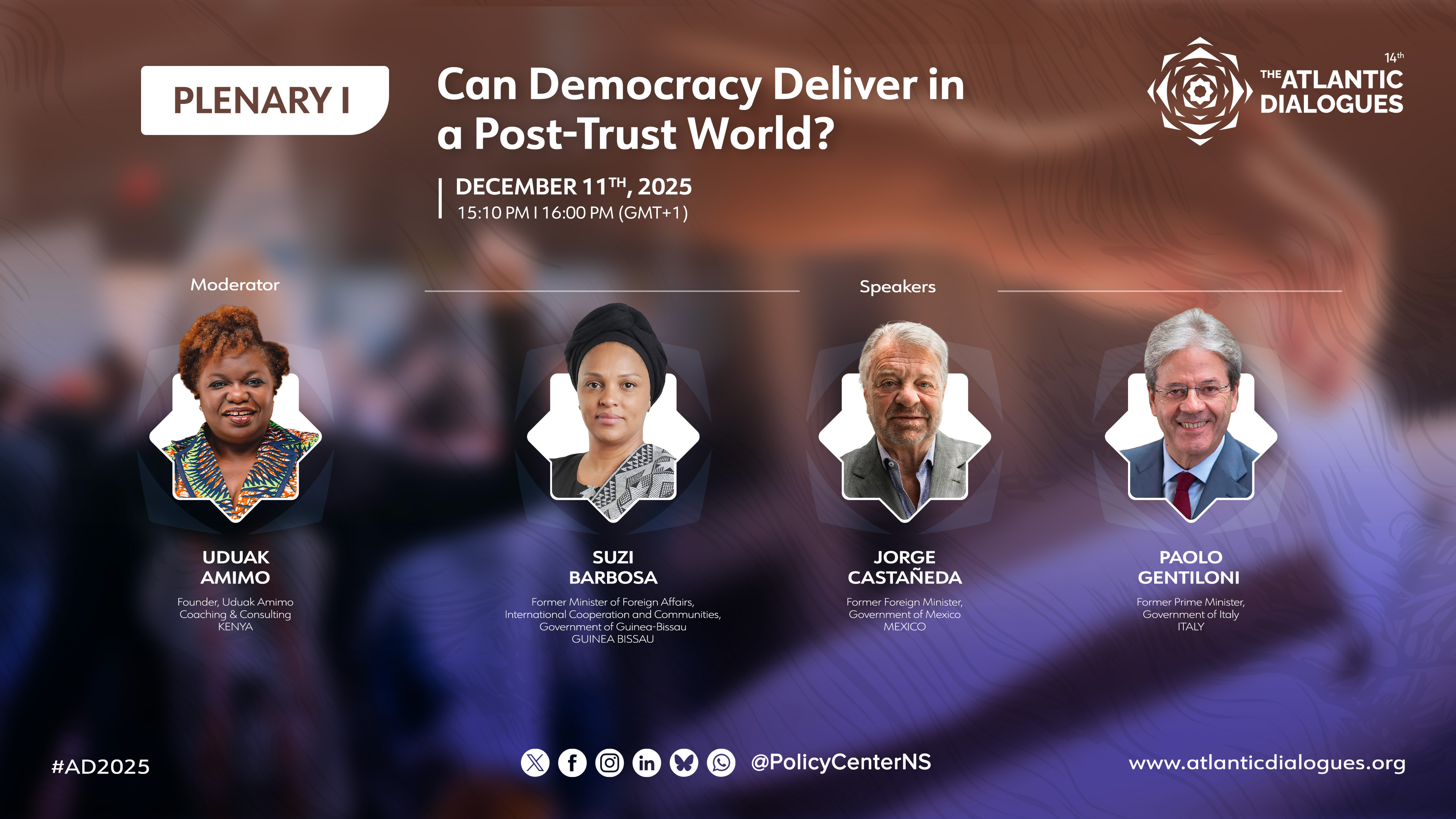 Back Plenary I Plenary I: Can Democracy Deliver in a Post-Trust World? Thu, 12/11/2025 - 15:05 Plenary I: Can Democracy Deliver in a Post-Trust World? La démocratie peut-elle répondre aux attentes dans un monde post-confiance ? الجلسة العامة الأولى: هل تستطيع الديمقراطية تلبية التطلعات في عالم ما بعد الثقة؟ Guerras comerciales y economías de guerra: ¿los conflictos reconfiguran mercados?